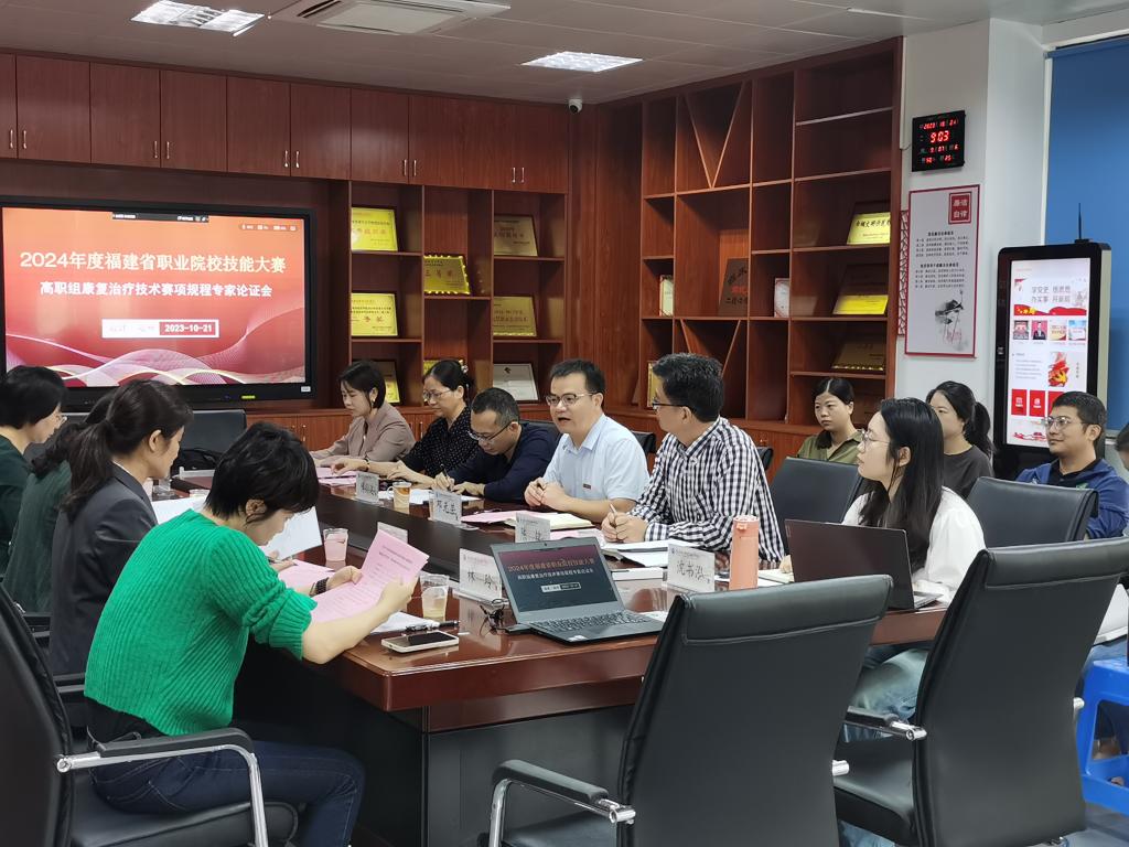 2024年度福建省職業(yè)院校技能大賽高職組“康復(fù)治療技術(shù)”賽項規(guī)程專家論證會于10月21日在我校召開。為保證大賽的科學(xué)性、合理性及公平性,會議特邀湖北職業(yè)技術(shù)學(xué)院康復(fù)專業(yè)帶頭人羅萍副教授等具有豐富大賽指導(dǎo)經(jīng)驗的專家進行研討論證。醫(yī)學(xué)院黨總支書記傅衍達、鄧元榮副院長、陳銘副院長、劉能英副院長、康復(fù)治療技術(shù)專業(yè)負責人鄭松以及康復(fù)教研室教師等出席會議,會議由鄧元榮主持。