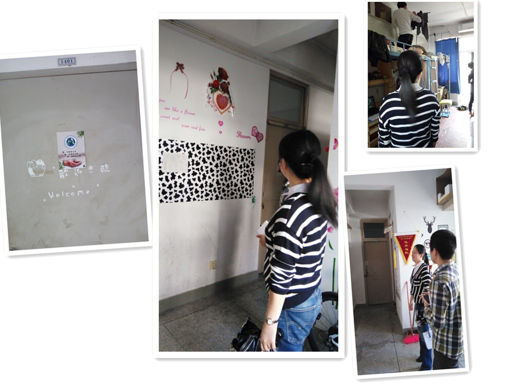 陳書記和兩位輔導(dǎo)員仔細(xì)排查宿舍中可能存在的各項(xiàng)衛(wèi)生、安全問題,親自動(dòng)手檢查寢室內(nèi)的各個(gè)衛(wèi)生死角,并詳細(xì)觀看物品的擺放情況。檢查中發(fā)現(xiàn)少部分宿舍存在一些共性問題,包括被褥擺放不規(guī)范、死角打掃不徹底、陽臺(tái)物品擺放雜亂等。