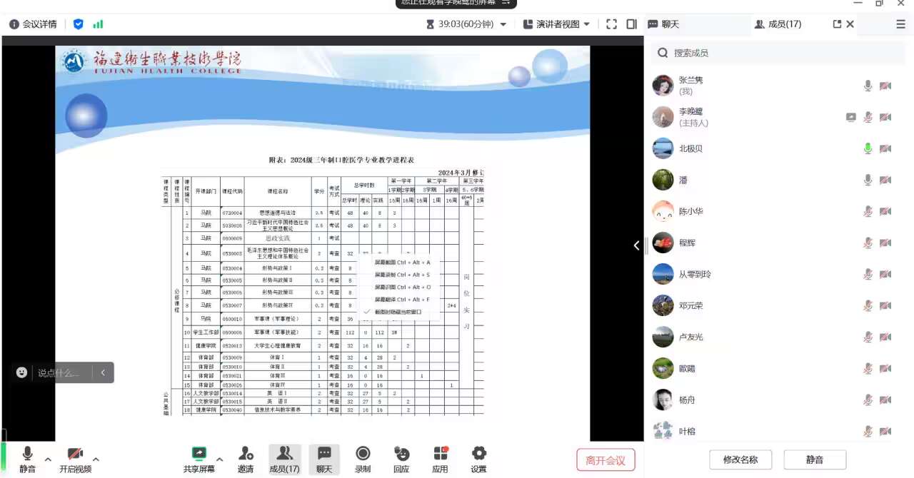會上,鄧元榮介紹了口腔醫(yī)學(xué)專業(yè)發(fā)展概況。專業(yè)帶頭人馬清璇對2024級口腔醫(yī)學(xué)專業(yè)人才培養(yǎng)方案修訂進(jìn)行解讀,匯報2023年口腔醫(yī)學(xué)執(zhí)業(yè)助理醫(yī)師通過率情況。各位專家對專業(yè)人才培養(yǎng)方案進(jìn)行充分討論,指出教學(xué)須緊密圍繞學(xué)生工作崗位的臨床需求,并就如何提升口腔醫(yī)學(xué)執(zhí)業(yè)助理醫(yī)師考試通過率提出了寶貴的意見和建議。