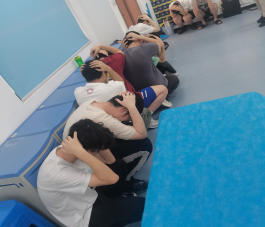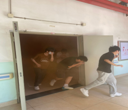 二是應(yīng)急逃生演練(消防、地震)。安全工作處林澤文老師詳細(xì)介紹消防器材使用、疏散信號(hào)、疏散路線、疏散順序等注意事項(xiàng),并強(qiáng)調(diào)在疏散過(guò)程中切勿擁擠、推搡導(dǎo)致踩踏事件發(fā)生。演練工作組接到演練指令后,燃放煙霧,迅速開(kāi)啟實(shí)訓(xùn)室的安全出口大門,組織學(xué)生彎腰、捂口鼻、無(wú)人喧嘩、迅速有序地撤出實(shí)訓(xùn)室,按照指定路線,從樓梯通道內(nèi)側(cè)撤離,到空曠位置集合并清點(diǎn)人數(shù)。