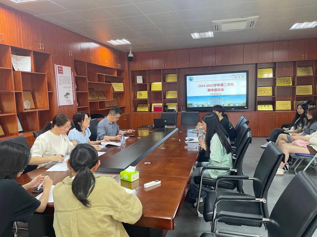 醫(yī)學院于2025年4月18日在篤行樓311會議室召開期中座談會。學校質(zhì)量管理辦公室副主任李燕平,醫(yī)學院院長鄧元榮、副院長劉能英以及各班學習委員參加此次會議。