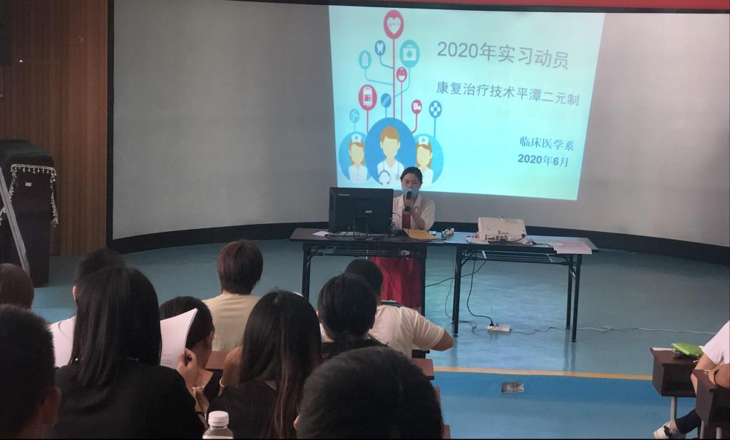 為進(jìn)一步完善平潭“二元制”學(xué)生第一階段實(shí)習(xí)工作,確保學(xué)生在常態(tài)化疫情防控形勢(shì)下能安全、順利的完成實(shí)習(xí),6月27日,臨床醫(yī)學(xué)系林國(guó)威副主任、康復(fù)專業(yè)鄭松老師及輔導(dǎo)員蔡唐彥老師赴平潭,對(duì)19級(jí)二元制康復(fù)治療技術(shù)專業(yè)學(xué)生開(kāi)展實(shí)習(xí)動(dòng)員大會(huì)。