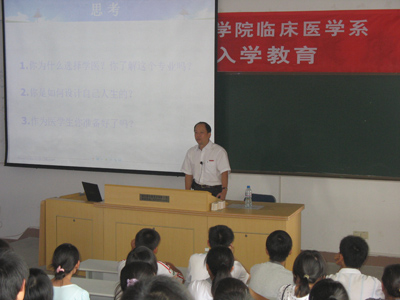 9月3日,在臨床醫(yī)學系的第二階梯教室,由臨床醫(yī)學系林志明常務副主任主持召開了2008級新生入學教育。臨床醫(yī)學系主任魏真主任醫(yī)師從學校及學院概況、課程設計、學業(yè)要求等幾個方面的闡述讓新同學對自己所學的專業(yè)有了全面的認識。