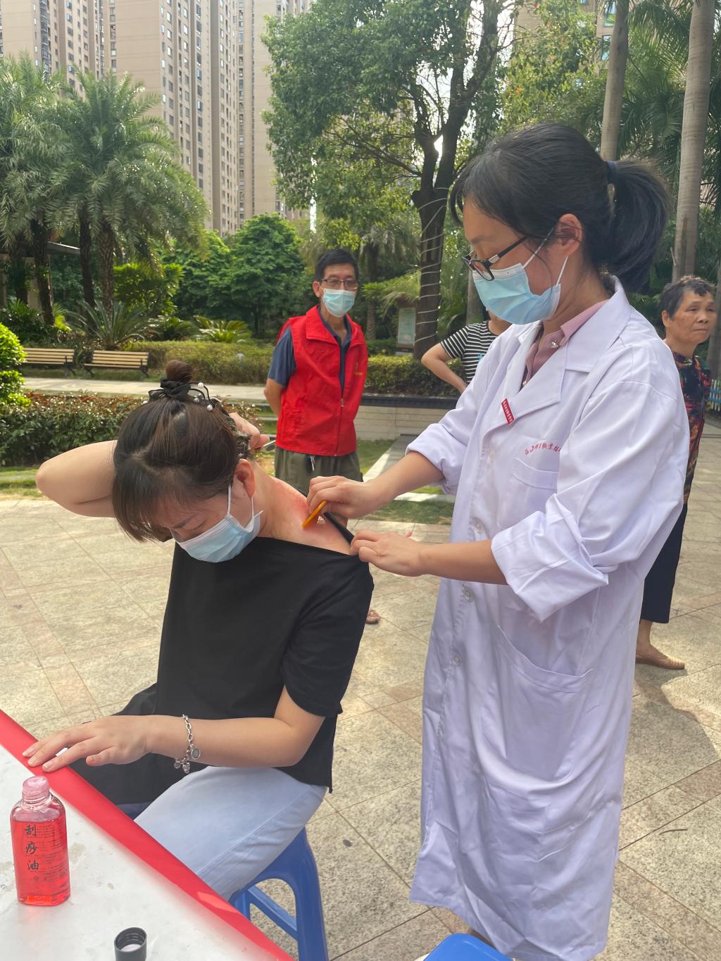 活動(dòng)中,三位老師對(duì)前來義診的居民們進(jìn)行認(rèn)真辨證施治,熟練運(yùn)用專業(yè)手法,針對(duì)性地為他們提供針刺、刮痧、拔罐、推拿等醫(yī)療保健服務(wù),并為其詳盡解答相關(guān)健康問題,受到居民們的一致好評(píng),并表示希望今后能多開展此類義診活動(dòng)。