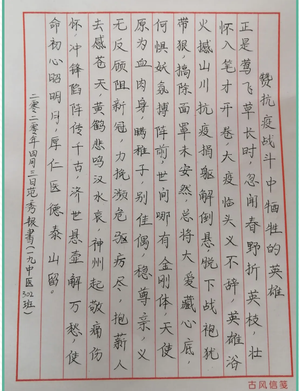 清明是追思過往的回眸,也是希冀未來的遙望。我們感謝白衣天使們堅(jiān)守為我們帶來的春暖花開的希望,致敬最美逆行者,致敬英勇的抗“疫”烈士,致敬中國的脊梁!在向抗“疫”英烈緬懷致敬的同時(shí),我們也要堅(jiān)定信心!同舟共濟(jì),以必勝的決心,打贏這場疫情阻擊戰(zhàn)!以蓬勃的姿態(tài),迎接更加遼闊的生命。而我們作為新青年,更應(yīng)該時(shí)刻提醒自己肩負(fù)著時(shí)代責(zé)任與復(fù)興偉業(yè),希望同學(xué)們能在黨和人民最需要的地方綻放青春,留下充實(shí)溫暖,持久無悔的回憶。