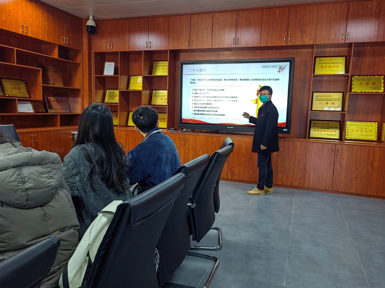 黨支部書記吳曉欣也與大家分享了觀看黨的二十大開幕會時(shí)的振奮與喜悅,暢談發(fā)展,共話未來。他表示,作為一名青年黨員,我們一定要全面學(xué)習(xí)、全面把握、全面落實(shí),緊密結(jié)合實(shí)際,切實(shí)推動(dòng)黨的二十大精神走深走實(shí),為全面建設(shè)社會主義現(xiàn)代化國家、全面推進(jìn)中華民族偉大復(fù)興貢獻(xiàn)青春力量。