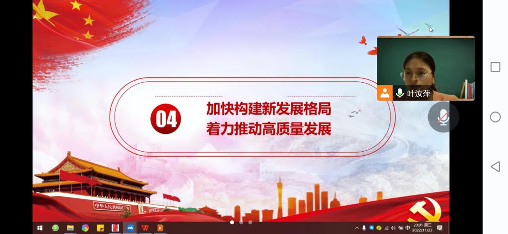 陳銘表示,我們要認真學(xué)習(xí)貫徹好黨的二十大精神,必須堅持系統(tǒng)觀念,深刻理解加快構(gòu)建新發(fā)展格局與著力推動高質(zhì)量發(fā)展的理論邏輯、歷史邏輯和實踐邏輯,認真做好結(jié)合、銜接、聯(lián)動、貫通四篇文章,將黨的二十大精神同學(xué)校的發(fā)展結(jié)合起來,并落實到教師教學(xué)中去。當(dāng)前,學(xué)校正處在雙高建設(shè)關(guān)鍵時期,教師要將高質(zhì)量發(fā)展理念貫穿教書育人全過程,做好課程思政建設(shè),為培育高素質(zhì)技術(shù)技能人才作出貢獻。支部黨員們一致認同。全面建設(shè)社會主義現(xiàn)代化國家的任務(wù)偉大而艱巨,必須要全面貫徹新發(fā)展理念。要堅持和加強黨的全面領(lǐng)導(dǎo),堅持中國特色社會主義道路,堅持以人民為中心的發(fā)展思想,堅持深化改革開放,要堅持系統(tǒng)觀念,統(tǒng)籌發(fā)展和安全,把新發(fā)展理念貫徹到經(jīng)濟社會發(fā)展全過程和各領(lǐng)域。