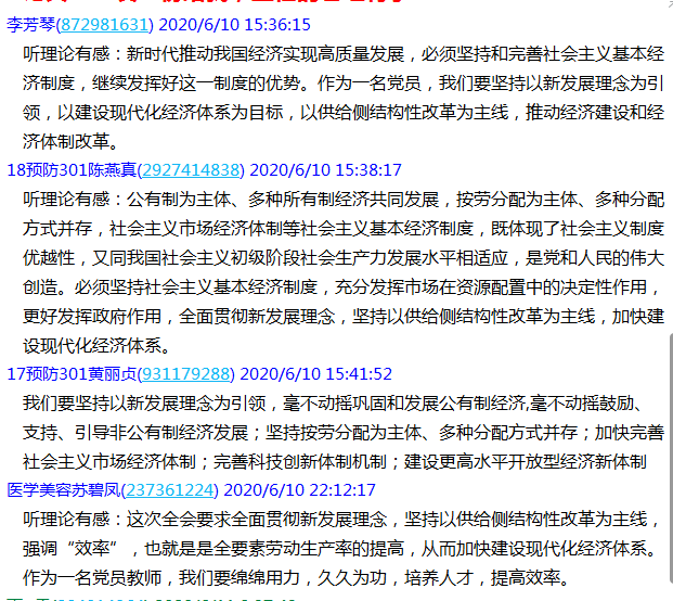 2020年6月10日,管理系第一黨支部全體黨員利用學(xué)習(xí)強(qiáng)國(guó)的聽(tīng)理論,在線進(jìn)行十九屆四中全會(huì)精神系列學(xué)習(xí),學(xué)習(xí)了中國(guó)制度十三講中的第五講。