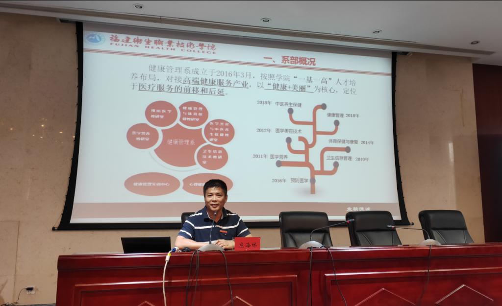 莊海林主任代表管理系全體師生對新同學的到來表示了熱烈的歡迎,并向同學們介紹了管理系的主要專業(yè)構(gòu)成、現(xiàn)有師資隊伍、系部的實訓(xùn)條件和歷年學生獲獎和參加活動情況。莊海林主任表示,管理系是按照學院“一基一高”人才培養(yǎng)布局,對接高端健康服務(wù)產(chǎn)業(yè),以“健康+美麗”為核心,定位于醫(yī)療服務(wù)的前移和后延,迎合了國家健康衛(wèi)生產(chǎn)業(yè)發(fā)展方向。