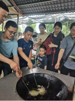 中午來(lái)到開(kāi)心農(nóng)場(chǎng),飽餐過(guò)后,開(kāi)啟歡樂(lè)的農(nóng)場(chǎng)生活。前往果園采摘,體驗(yàn)鄉(xiāng)村生活的同時(shí),碩果滿滿;體驗(yàn)陶藝,收獲了滿臉的泥巴,還有親手制作的作品;油炸海蠣餅,享受福州街頭名小吃的制作過(guò)程,不亦樂(lè)乎。