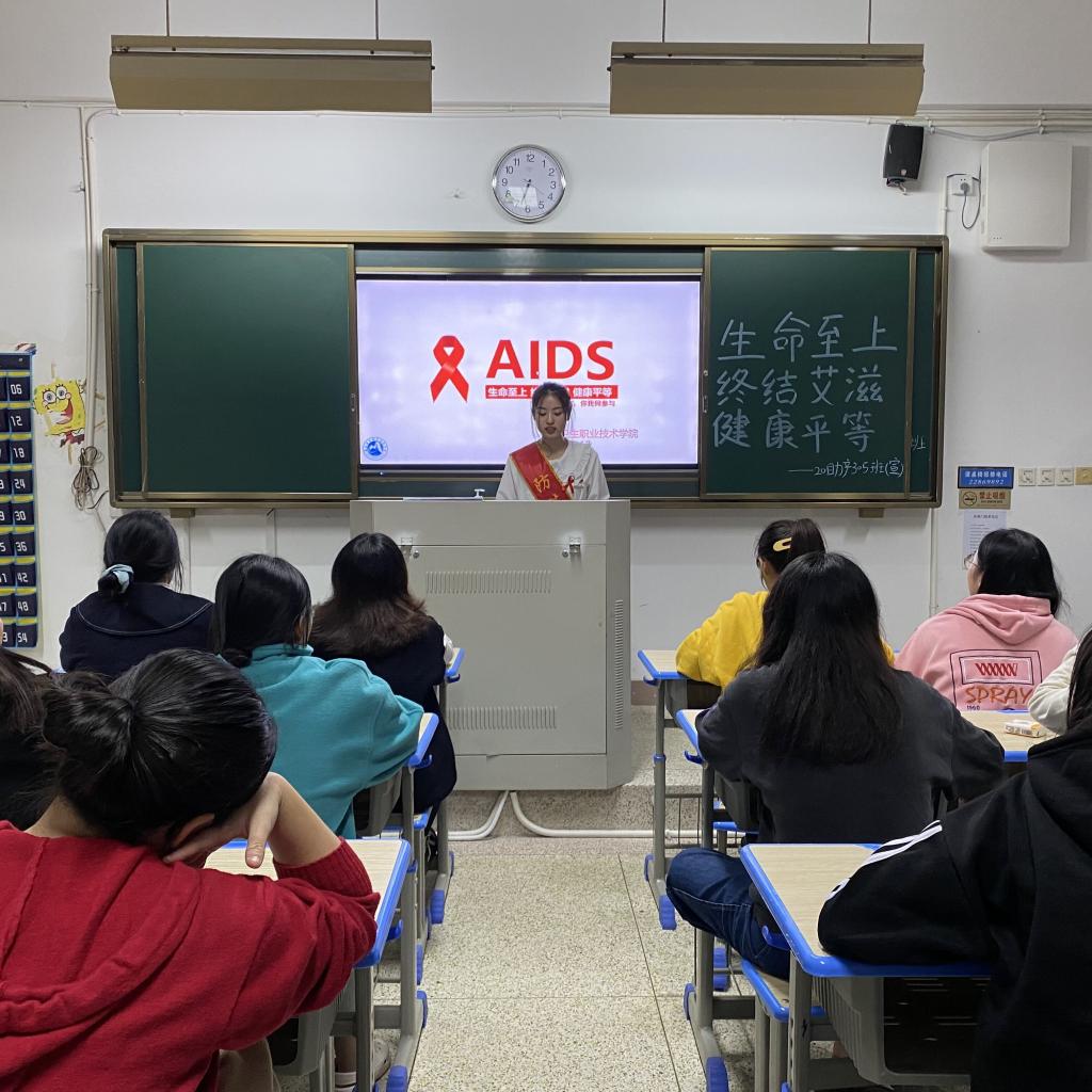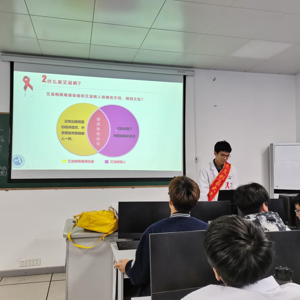艾滋病是讓人聞之色變的疾病,這種疾病不但在社會群體中發(fā)生,近年來,大學(xué)生群體艾滋病感染者的報(bào)告數(shù)也不少,平均每年在15-24歲青年學(xué)生中報(bào)告3000例艾滋病感染者。今年的12月1日是第34個(gè)“世界艾滋病日”,其主題是“生命至上,終結(jié)艾滋,健康平等”,為遏制艾滋、將艾滋攔截于校園之外,發(fā)揮防艾宣傳員的防艾宣教能力,在11月18-28日,我校2名防艾形象大使和8位防艾宣傳員入班級開展防艾宣教活動。