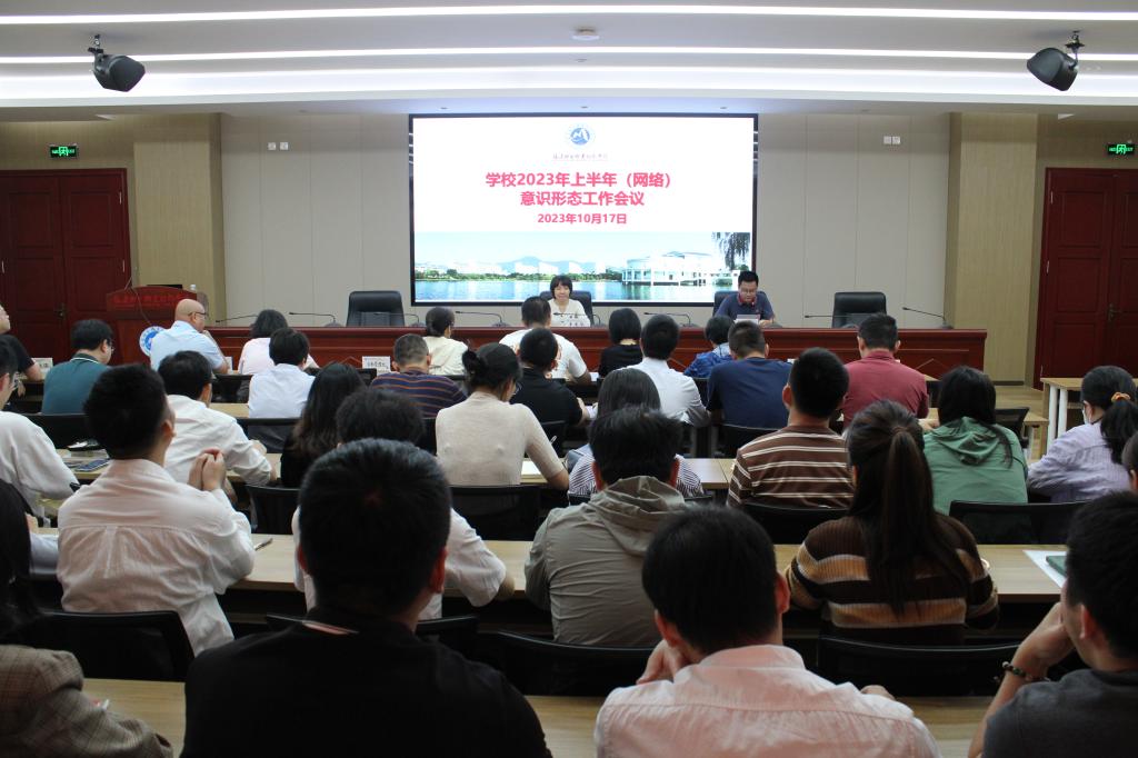 10月17日上午,我校2023年上半年(網(wǎng)絡(luò))意識形態(tài)工作會議在行政樓六樓會議室召開。校黨委副書記李美華,學(xué)校網(wǎng)絡(luò)安全和信息化領(lǐng)導(dǎo)小組辦公室各成員、各學(xué)生院系黨總支負(fù)責(zé)人、全體專兼職輔導(dǎo)員、宣傳部工作人員參加會議。會議由宣傳部部長宋維主持。