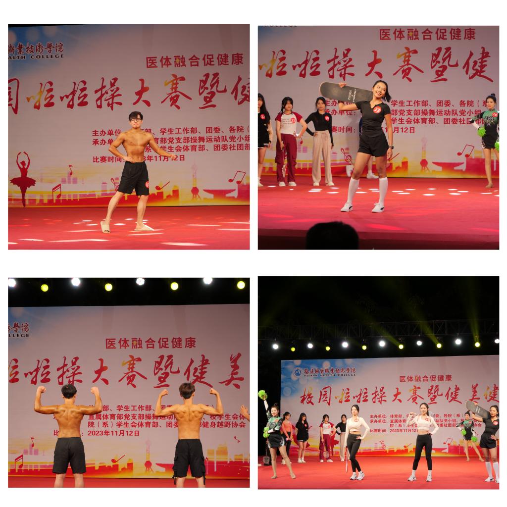經(jīng)過激烈角逐,醫(yī)學院獲團體總分一等獎,醫(yī)學技術(shù)系2隊獲雙人花球冠軍,護理學院1隊獲校園花球示范套路冠軍;藥學院彭鑫獲男子健體A組冠軍,藥學院黃梓輝獲男子健體B組冠軍,醫(yī)學院龍榮獲女子健身模特A組冠軍,健康管理系江一丹獲女子健身模特B組冠軍。