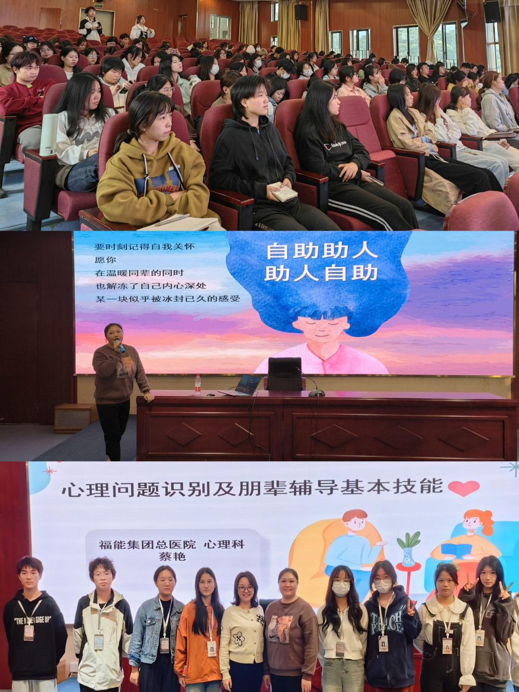 為促進(jìn)我校心理健康教育工作的開展,提升心理朋輩輔導(dǎo)技巧和操作實(shí)踐能力。11月13日,我校邀請(qǐng)福建省福能集團(tuán)總醫(yī)院心理科主任蔡艷為我校心理朋輩開展“心理問題識(shí)別及朋輩輔導(dǎo)基本技能”主題講座。蔡艷從常見心理問題、心理問題識(shí)別和朋輩輔導(dǎo)技巧三大方面為同學(xué)們講述了許多有實(shí)效價(jià)值的心理疏導(dǎo)原則和技巧,并通過現(xiàn)場(chǎng)互動(dòng)問答,進(jìn)一步提高心理朋輩處理心理問題的能力。